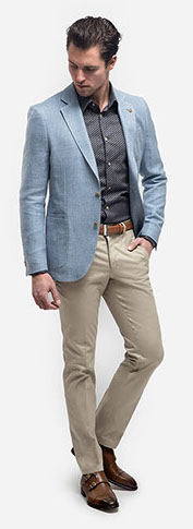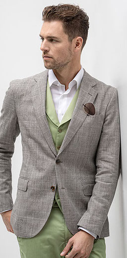 V letních parních dnech volte lněný oblek. Je vzdušný a elegantní zároveň. Len se sice, oproti vlněným materiálům, mačká, ale i díky tomu získává punc mírné ležérnosti. Zároveň vypadá velmi dobře v pastelových, tedy světlých, barvách, které tolik nepřitahují slunce.
